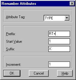 If the first entity selected is a block the attributes within that block are listed in a pop-up list box. You can enter a prefix and a suffix that will be at the beginning and end respectively of each entry and a starting value. This value can be any letter or number. If a letter is entered, the case will remain as entered and when the program goes past z or Z the results may be unexpected. Finally an increment should be entered. If zero is entered for the increment, all entities will be the same.